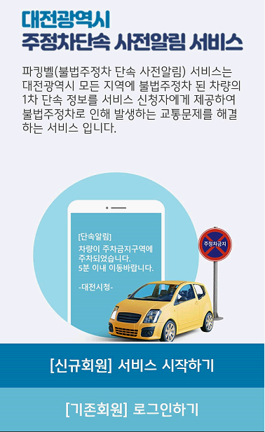 대전시에 거주한다면, 주차단속 사전 알림 서비스 파킹벨 신청하세요.