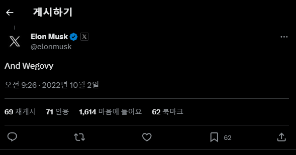 위고비는 일론머스크 킴카다시안 등 많은 셀럽들의 체중감소 리뷰로 품절현상을 일으키며 품귀현상으로 공급부족을 일고 있습니다. 노보 노디스크가 삭센다를 편의성과 효과를 높여 새롭게 출시한 치료제입니다. 임상 연구에서는 평균 체중 감소율이 14.9%로 나타났습니다.