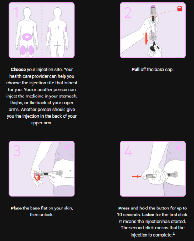 투여방법 : 복부 허벅지 등 피하의 자가주사
