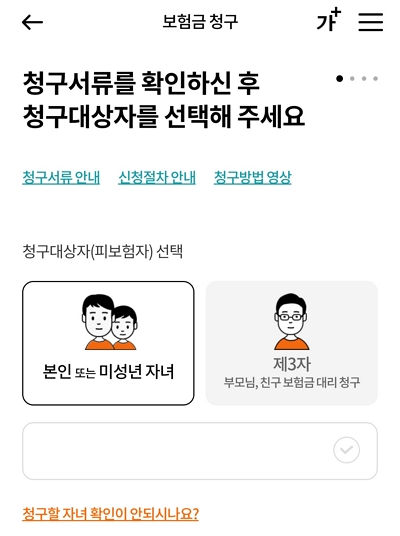 ③ 본인/자녀 혹은 제 3자 청구를 선택하세요.