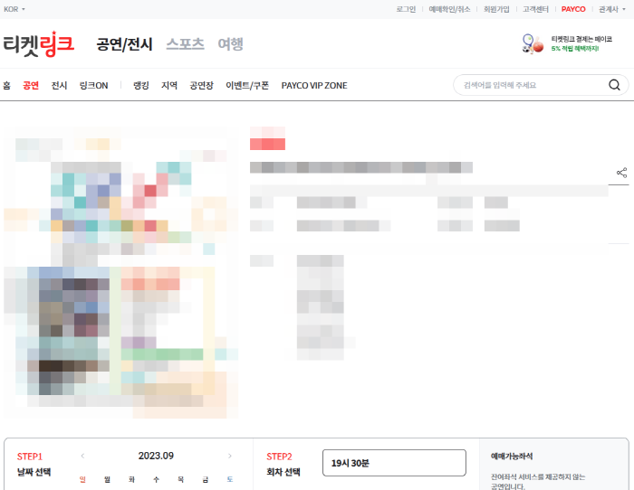 티켓링크는, 위 사진에서 보듯 예매가 첫날 9월16일 / 09월 17일 2일이라면,